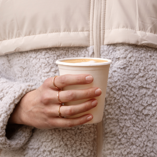 Die ausgepressten Faserreste des Zuckerrohrs werden mit Wasser zu einem Brei vermischt und kann somit in unterschiedlichste Formen gepresst werden. Natürlich bleibt dein Becher naturbelassen und geschmacksneutral und ist natürlich auch zu 100% kompostierbar. Dennoch ist es ebenso stabil und griffig wie Pappe, eignen sich für warme und kalte Getränke und Speisen wie dein herkömmlicher Pappbecher auch.