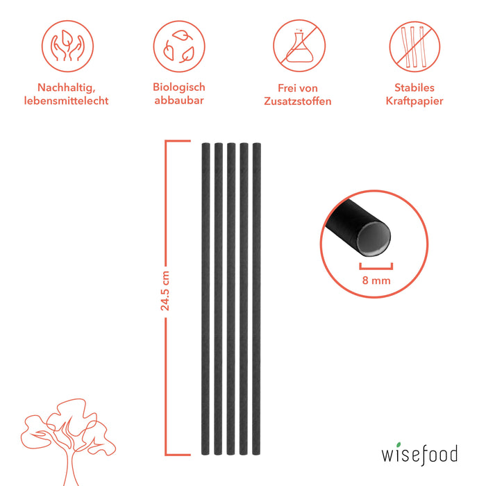 Paper straws 8x245mm black