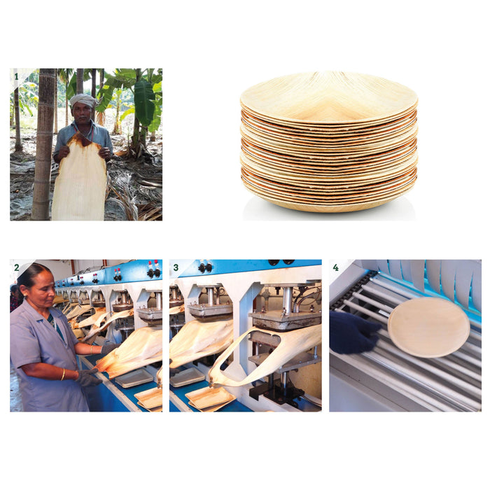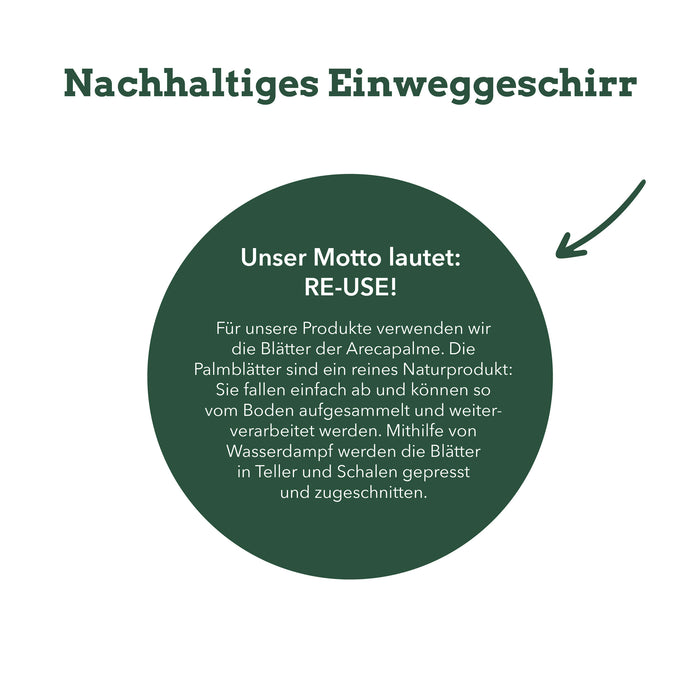 Unser nachhaltiges Geschirr ist aus ganzen Palmblättern hergestellt, dass aus kontrolliertem Anbau stammt und ist somit die perfekte Alternative zu Plastikgeschirr.